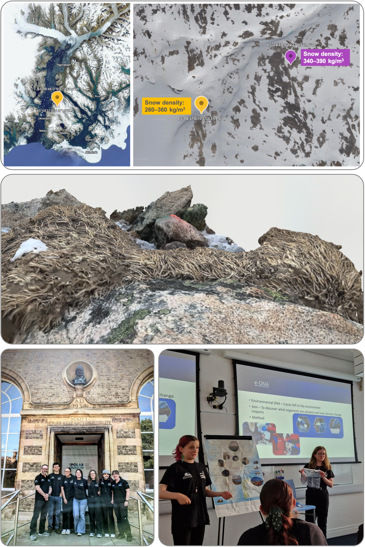 Successful pilot studies in East Greenland: We piloted snow density and eDNA sampling in remote regions near Tasiilaq, identifying specific methodological challenges for Arctic fieldwork.